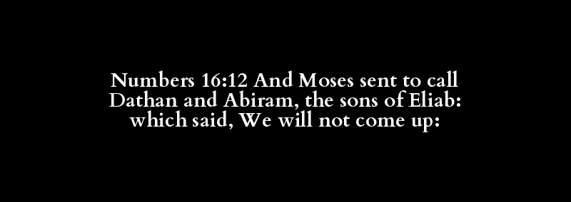 Numbers 16:12 And Moses sent to call Dathan and Abiram, the sons of Eliab: which said, We will not come up:
