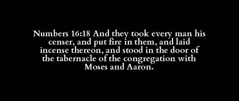 Numbers 16:18 And they took every man his censer, and put fire in them, and laid incense thereon, and stood in the door of the tabernacle of the congregation with Moses and Aaron.