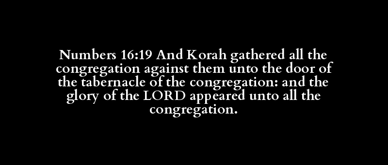 Numbers 16:19 And Korah gathered all the congregation against them unto the door of the tabernacle of the congregation: and the glory of the LORD appeared unto all the congregation.