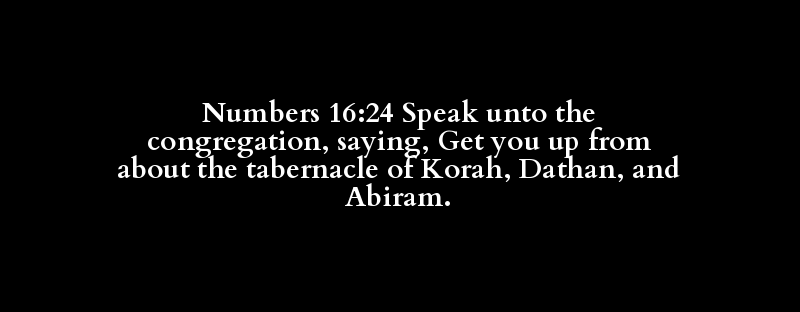 Numbers 16:24 Speak unto the congregation, saying, Get you up from about the tabernacle of Korah, Dathan, and Abiram.