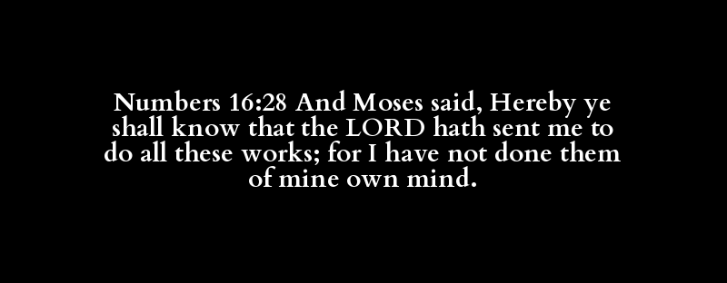 Numbers 16:28 And Moses said, Hereby ye shall know that the LORD hath sent me to do all these works; for I have not done them of mine own mind.