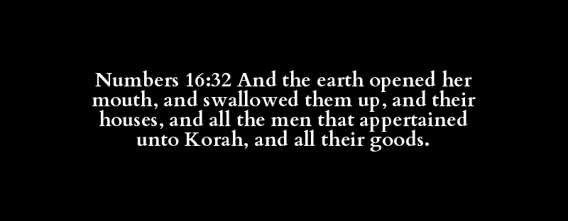 Numbers 16:32 And the earth opened her mouth, and swallowed them up, and their houses, and all the men that appertained unto Korah, and all their goods.
