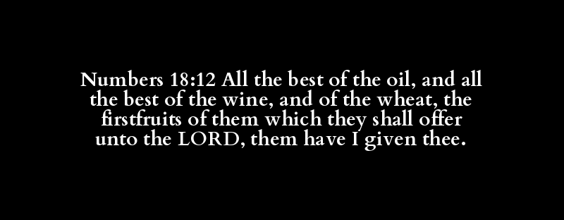 Numbers 18:12 All the best of the oil, and all the best of the wine, and of the wheat, the firstfruits of them which they shall offer unto the LORD, them have I given thee.