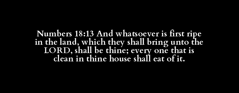 Numbers 18:13 And whatsoever is first ripe in the land, which they shall bring unto the LORD, shall be thine; every one that is clean in thine house shall eat of it.