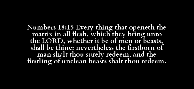 | פֶּטֶר | רֶחֶם | בָּשָׂר | קָרַב | יְהֹוָה | אָדָם | בְּהֵמָה | בְּכוֹר | אָדָם | פָּדָה | פָּדָה | בְּכוֹר | טָמֵא | בְּהֵמָה | פָּדָה |
