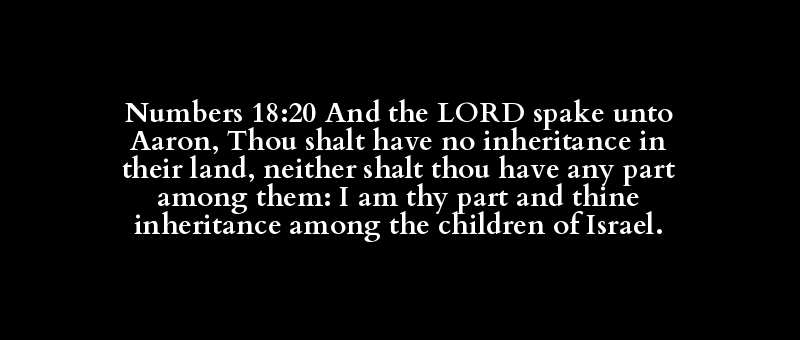 Numbers 18:20 And the LORD spake unto Aaron, Thou shalt have no inheritance in their land, neither shalt thou have any part among them: I am thy part and thine inheritance among the children of Israel.