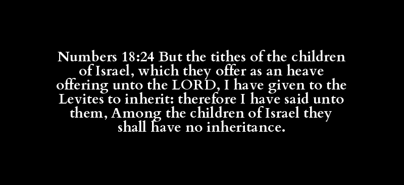 Numbers 18:24 But the tithes of the children of Israel, which they offer as an heave offering unto the LORD, I have given to the Levites to inherit: therefore I have said unto them, Among the children of Israel they shall have no inheritance.