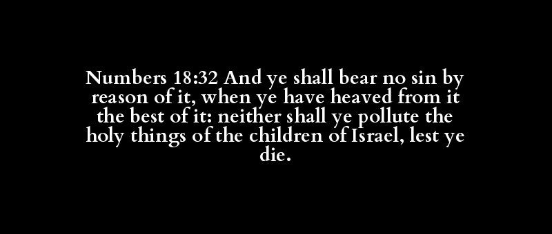 Numbers 18:32 And ye shall bear no sin by reason of it, when ye have heaved from it the best of it: neither shall ye pollute the holy things of the children of Israel, lest ye die.