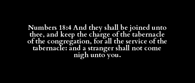 Numbers 18:4 And they shall be joined unto thee, and keep the charge of the tabernacle of the congregation, for all the service of the tabernacle: and a stranger shall not come nigh unto you.