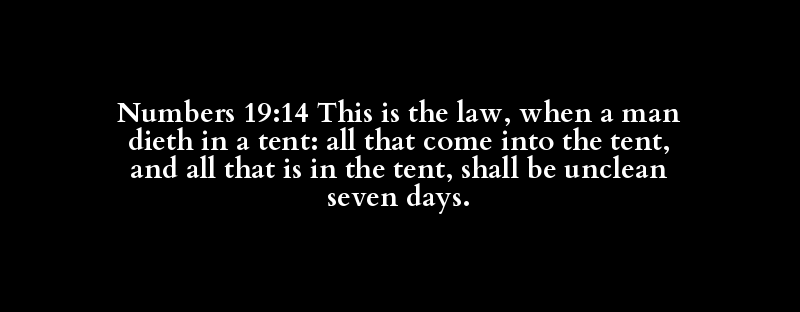 Numbers 19:14 This is the law, when a man dieth in a tent: all that come into the tent, and all that is in the tent, shall be unclean seven days.