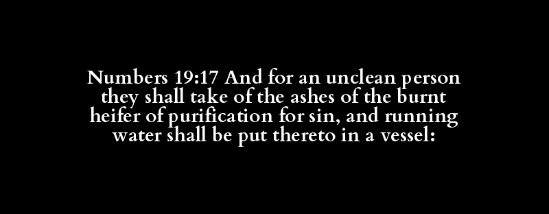 Numbers 19:17 And for an unclean person they shall take of the ashes of the burnt heifer of purification for sin, and running water shall be put thereto in a vessel: