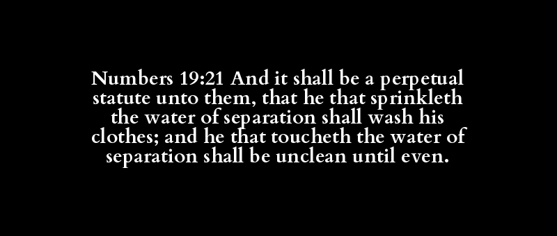 Numbers 19:21 And it shall be a perpetual statute unto them, that he that sprinkleth the water of separation shall wash his clothes; and he that toucheth the water of separation shall be unclean until even.