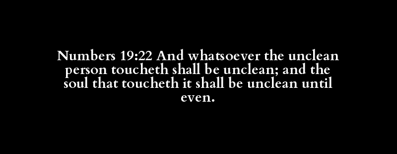 Numbers 19:22 And whatsoever the unclean person toucheth shall be unclean; and the soul that toucheth it shall be unclean until even.