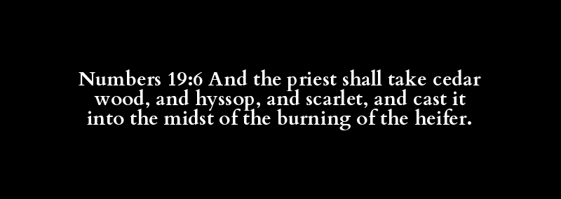 Numbers 19:6 And the priest shall take cedar wood, and hyssop, and scarlet, and cast it into the midst of the burning of the heifer.