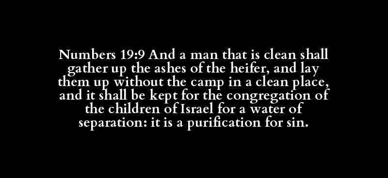 Numbers 19:9 And a man that is clean shall gather up the ashes of the heifer, and lay them up without the camp in a clean place, and it shall be kept for the congregation of the children of Israel for a water of separation: it is a purification for sin.