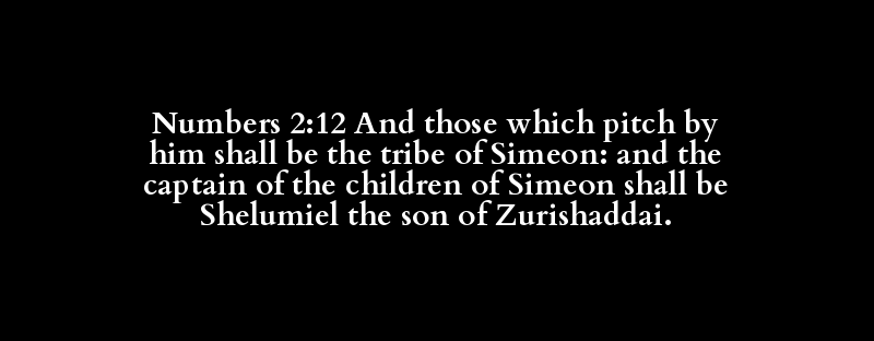 Numbers 2:12 And those which pitch by him shall be the tribe of Simeon: and the captain of the children of Simeon shall be Shelumiel the son of Zurishaddai.