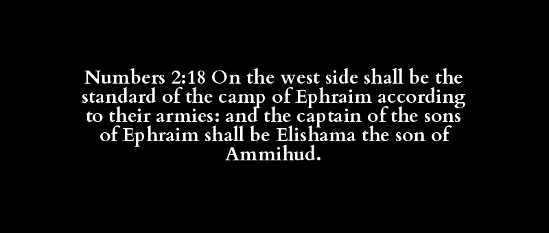 Numbers 2:18 On the west side shall be the standard of the camp of Ephraim according to their armies: and the captain of the sons of Ephraim shall be Elishama the son of Ammihud.