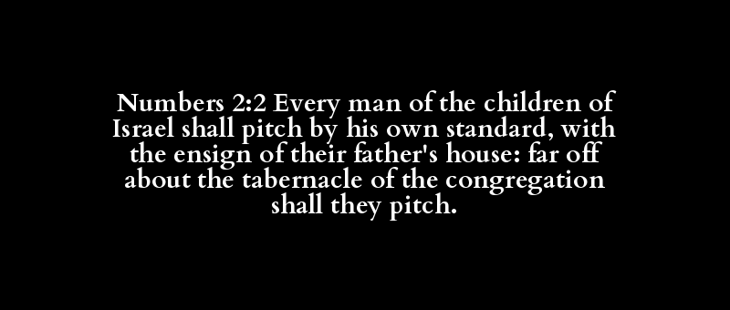 Numbers 2:2 Every man of the children of Israel shall pitch by his own standard, with the ensign of their father's house: far off about the tabernacle of the congregation shall they pitch.