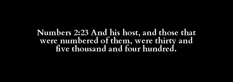 Numbers 2:23 And his host, and those that were numbered of them, were thirty and five thousand and four hundred.