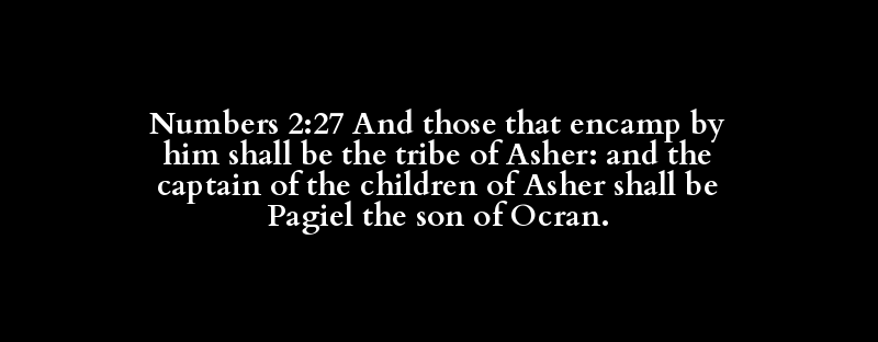 Numbers 2:27 And those that encamp by him shall be the tribe of Asher: and the captain of the children of Asher shall be Pagiel the son of Ocran.