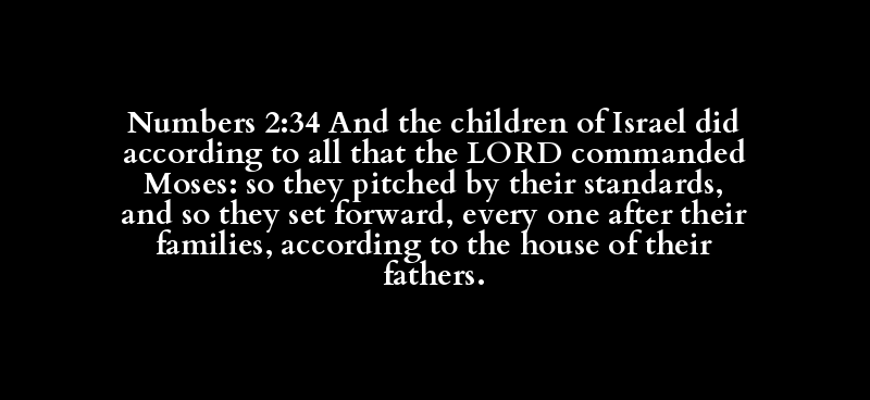 Numbers 2:34 And the children of Israel did according to all that the LORD commanded Moses: so they pitched by their standards, and so they set forward, every one after their families, according to the house of their fathers.