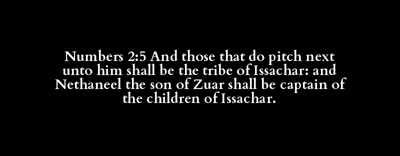 Numbers 2:5 And those that do pitch next unto him shall be the tribe of Issachar: and Nethaneel the son of Zuar shall be captain of the children of Issachar.
