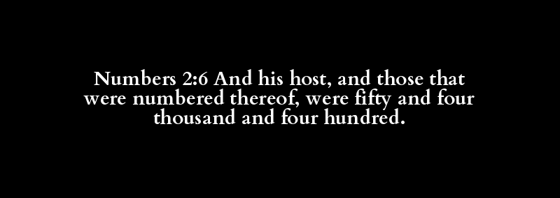 Numbers 2:6 And his host, and those that were numbered thereof, were fifty and four thousand and four hundred.