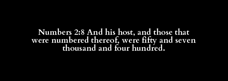 Numbers 2:8 And his host, and those that were numbered thereof, were fifty and seven thousand and four hundred.