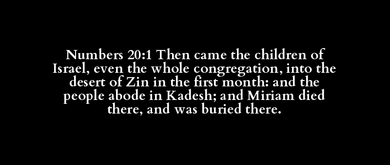 Numbers 20:1 Then came the children of Israel, even the whole congregation, into the desert of Zin in the first month: and the people abode in Kadesh; and Miriam died there, and was buried there.