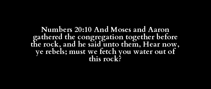 Numbers 20:10 And Moses and Aaron gathered the congregation together before the rock, and he said unto them, Hear now, ye rebels; must we fetch you water out of this rock?
