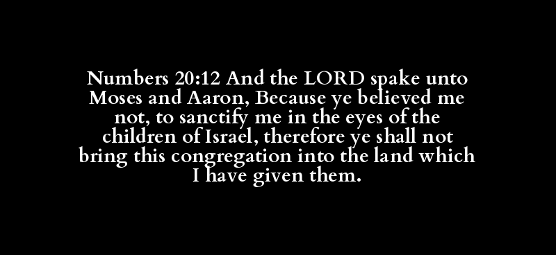 Numbers 20:12 And the LORD spake unto Moses and Aaron, Because ye believed me not, to sanctify me in the eyes of the children of Israel, therefore ye shall not bring this congregation into the land which I have given them.