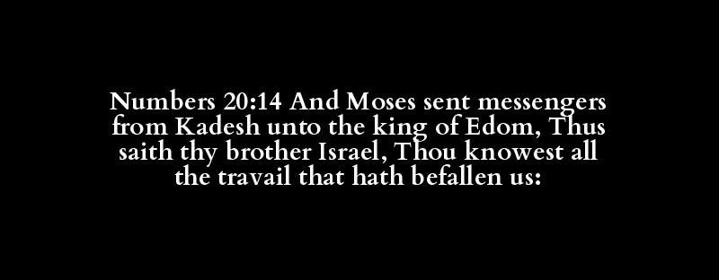 Numbers 20:14 And Moses sent messengers from Kadesh unto the king of Edom, Thus saith thy brother Israel, Thou knowest all the travail that hath befallen us: