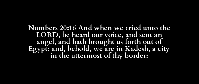Numbers 20:16 And when we cried unto the LORD, he heard our voice, and sent an angel, and hath brought us forth out of Egypt: and, behold, we are in Kadesh, a city in the uttermost of thy border: