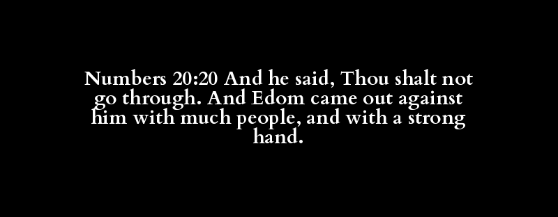 Numbers 20:20 And he said, Thou shalt not go through. And Edom came out against him with much people, and with a strong hand.