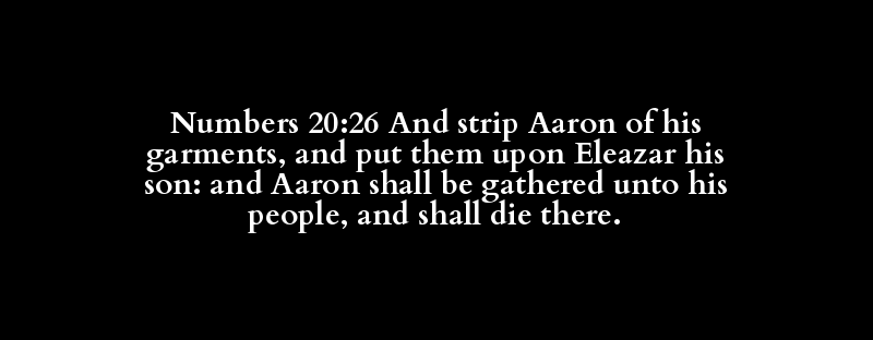 Numbers 20:26 And strip Aaron of his garments, and put them upon Eleazar his son: and Aaron shall be gathered unto his people, and shall die there.