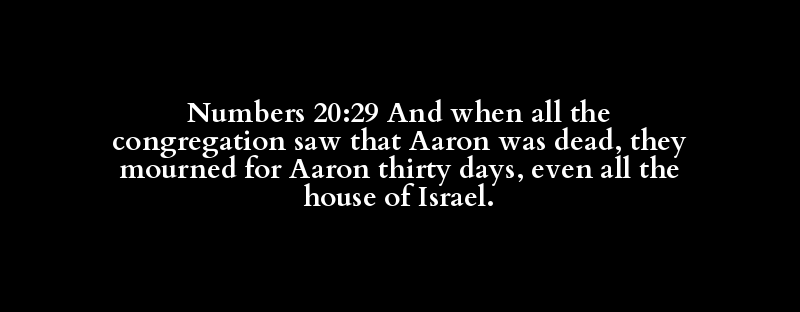 Numbers 20:29 And when all the congregation saw that Aaron was dead, they mourned for Aaron thirty days, even all the house of Israel.