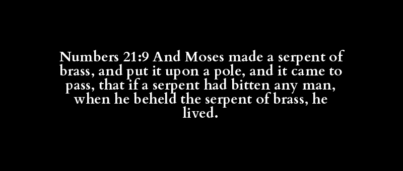 Numbers 21:9 And Moses made a serpent of brass, and put it upon a pole, and it came to pass, that if a serpent had bitten any man, when he beheld the serpent of brass, he lived.