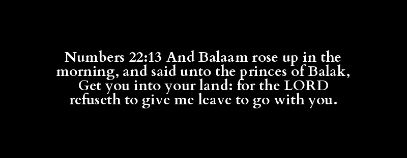 Numbers 22:13 And Balaam rose up in the morning, and said unto the princes of Balak, Get you into your land: for the LORD refuseth to give me leave to go with you.