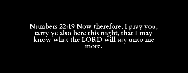 Numbers 22:19 Now therefore, I pray you, tarry ye also here this night, that I may know what the LORD will say unto me more.
