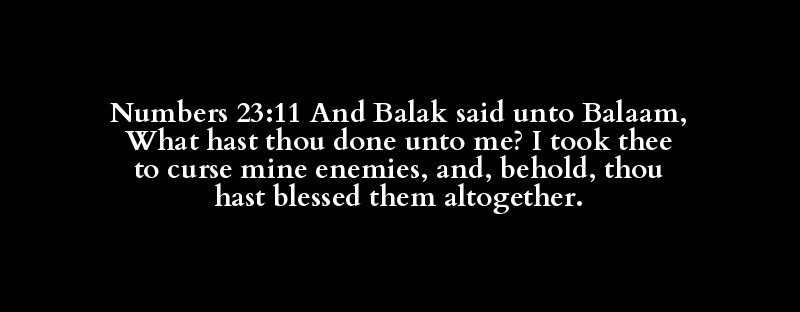 Numbers 23:11 And Balak said unto Balaam, What hast thou done unto me? I took thee to curse mine enemies, and, behold, thou hast blessed them altogether.
