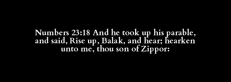 Numbers 23:18 And he took up his parable, and said, Rise up, Balak, and hear; hearken unto me, thou son of Zippor: