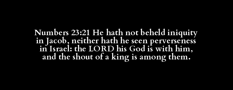 Numbers 23:21 He hath not beheld iniquity in Jacob, neither hath he seen perverseness in Israel: the LORD his God is with him, and the shout of a king is among them.