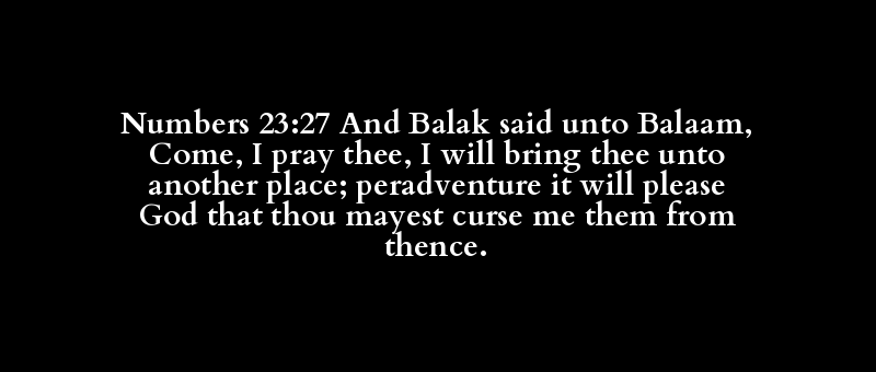 Numbers 23:27 And Balak said unto Balaam, Come, I pray thee, I will bring thee unto another place; peradventure it will please God that thou mayest curse me them from thence.