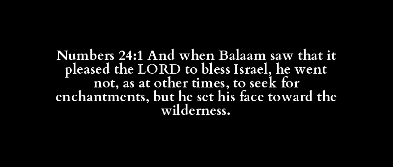 Numbers 24:1 And when Balaam saw that it pleased the LORD to bless Israel, he went not, as at other times, to seek for enchantments, but he set his face toward the wilderness.