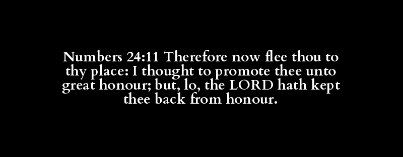 Numbers 24:11 Therefore now flee thou to thy place: I thought to promote thee unto great honour; but, lo, the LORD hath kept thee back from honour.