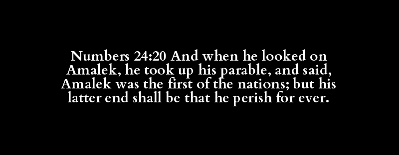 Numbers 24:20 And when he looked on Amalek, he took up his parable, and said, Amalek was the first of the nations; but his latter end shall be that he perish for ever.