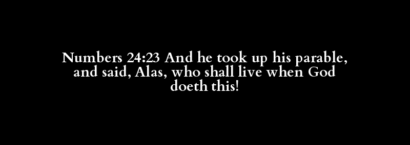 Numbers 24:23 And he took up his parable, and said, Alas, who shall live when God doeth this!