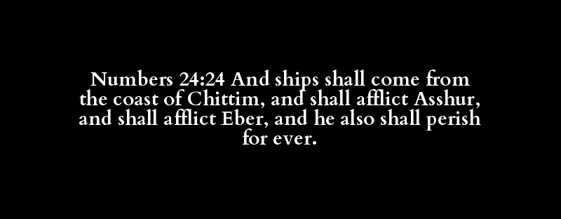 Numbers 24:24 And ships shall come from the coast of Chittim, and shall afflict Asshur, and shall afflict Eber, and he also shall perish for ever.