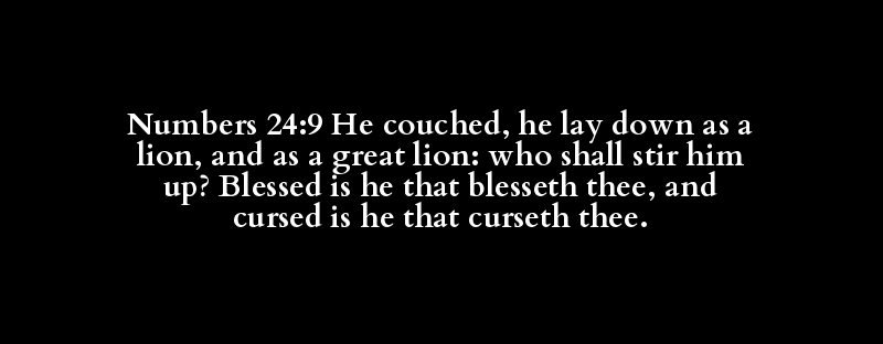 Numbers 24:9 He couched, he lay down as a lion, and as a great lion: who shall stir him up? Blessed is he that blesseth thee, and cursed is he that curseth thee.