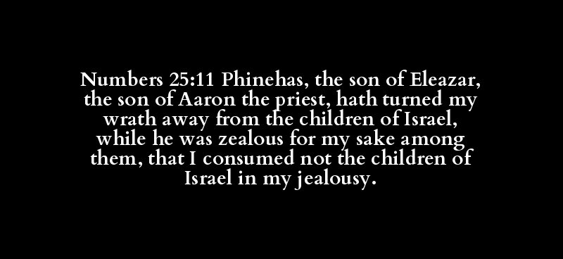 Numbers 25:11 Phinehas, the son of Eleazar, the son of Aaron the priest, hath turned my wrath away from the children of Israel, while he was zealous for my sake among them, that I consumed not the children of Israel in my jealousy.